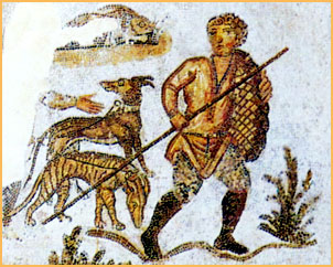 mosaic in Tabarka, Tunisia, 4th century.Tunis, Musee National du Bardo. Fantar, M., H., Picard, G., Ch., Mansour, S., B., Jeddi, N., Slim, H., Khanoussi, M., Yacoub, M., Foucher, L., Bejaoui, F., Ghedini, F., La Mosaique en Tunis, Les Editions de la Mediterranee, Tunis 1994, p. 109. © Musee National du Bardo, Tunis |