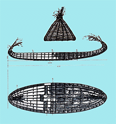 Design of the "papyrella" which was constructed for the experimental journey from Laurion to Melos. Tzalas, H., On the obsidian trail in: Tzalas, H. (ed.), Tropis III: 3rd International Symposium on Ship Construction in Antiquity, Hellenic Institute for the Preservation of the Nautical Tradition, Athens 1989, p. 463, fig. 1.