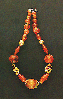 Aρχάνες. Περιδέραιο με χάντρες από σάρδιο και χρυσό. Από το θολωτό τάφο A. ΚΓ' ΕΠΚΑ. ΥΠΠΟ/ΤΑΠ.