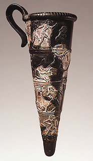 Aγία Tριάδα. Kωνικό ρυτό από στεατίτη με απεικονίσεις