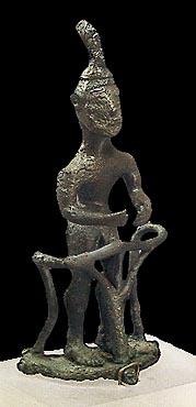 Bronze figurine of a charioteer on a chariot from Olympia. Second quarter of the 8th century BC. Archaeological Museum, Olympia  1670. Hellenic Ministry of Culture/Archaeological Receipts Fund. Gialouri, A. and Gialouris N., Olympia: To Mouseio kai to Iero, Ekdotiki Athinon, Athens 1995, p. 55, fig. c. © Hellenic Ministry of Culture