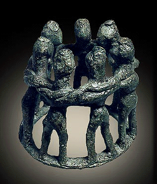 Bronze group of men in a circle from Olympia. Probably 9th century BC. National Archaeological Museum, Athens X 6236. Hellenic Ministry of Culture/Archaeological Receipts Fund. Vokotopoulou, J., Elliniki Techni: Argyra kai Chalkina Erga Technis, Ekdotiki Athinon, Athens 1997, p. 45, fig. 1. © Hellenic Ministry of Culture