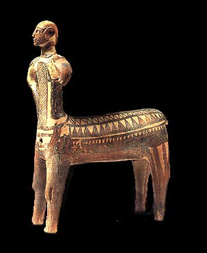 Wheel-made figurine of a Centaur from the cemetery in Lefkandi. Late 10th century BC. Archaeological Museum, Eretria ME 8620. Hellenic Ministry of Culture/Archaeological Receipts Fund. Sapouna-Sakellaraki, E., Eretria: Site and Museum, Hellenic Ministry of Culture/Archaeological Receipts Fund, Athens 1995, p. 61, fig. 41. © Hellenic Ministry of Culture