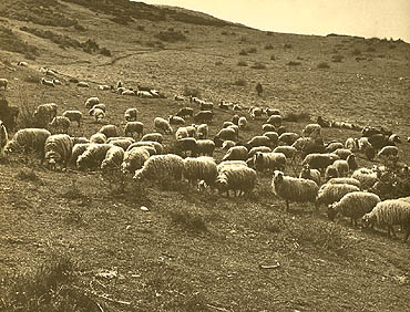 A flock of sheep grazing. Husbandry was a significant economic activity during the Dark Age and Geometric period.