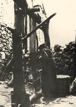 Upright loom on which weaving takes place from bottom to top. Traditional looms preserve elements of the weaving practice of early historical times. Psarraki-Belessioti, N., Paradosiakes kalliergeies, Benaki Museum, Athens 1978, p. 115, fig. 158. Photographic archive of Benaki Museum. © Benaki Museum |