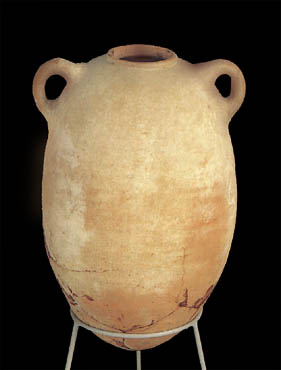 Phoenician type amphora found at Soulsi, Sardinia. It was used for the transportation of products, such as wine and olive oil. 8th century BC. Sant' Antioco, Museo Communale. Carrattelli, G.P. (ed.), The Western Greeks, Bompiani 1996, p. 193, cat. no. 22. © Museo Communale, Sant' Antioco. |