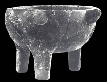 The three-legged lebes (cauldron) is already encountered in the Mycenaean Age, and its use also continues during the Geometric period. Its shape is a fusion of the stand and the vase supported by it. A three-legged lebes with spout from Zagora, Andros. 8th century BC. Archaeological Museum, Andros 1210. Hellenic Ministry of Culture/Archaeological Receipts Fund. Cambitoglou, A., Archaiologiko Mouseio Androu: Odigos, Athens 1991, p. 38, fig. 16. © Hellenic Ministry of Culture