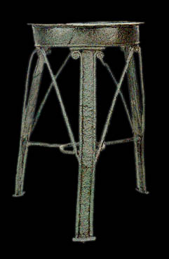 Bronze rod tripod from a grave in Knossos, which belonged to the real type believed to originate from Cyprus and traced throughout the eastern Mediterranean. 870-850 BC. Archaeological Museum, Herakleion X 4844. Hellenic Ministry of Culture/Archaeological Receipts Fund. Anatoliki Mesogeios: Kypros-Dodekanisa-Kriti 16os-6os aionas p. Ch., Archaeological Museum of Herakleion March-June 1998, University of Crete-Hellenic Ministry of Culture 23rd Ephorate of Prehistoric and Classical Antiquities, Herakleion 1998, p. 232, cat. no. 275. © Hellenic Ministry of Culture |