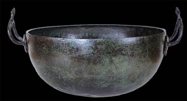 Cypriot-style bronze lebes (cauldron) from Rethymnon. 8th century BC. Archaeological Museum, Herakleion. Giamalakis collection X 219. Hellenic Ministry of Culture/Archaeological Receipts Fund. Anatoliki Mesogeios: Kypros-Dodekanisa-Kriti 16os-6os aionas p.Ch., Archaeological Museum of Herakleion March-June 1998, University of Crete-Hellenic Ministry of Culture 23rd Ephorate of Prehistoric and Classical Antiquities, Herakleion 1998, p. 234, cat. no. 280. © Hellenic Ministry of Culture