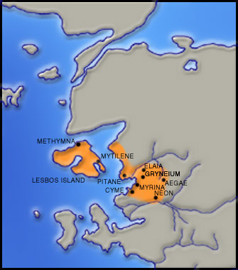 Map showing the extent of the Aeolian colonies with their religious centre at Grynium. Christopoulos, G. (ed.), Istoria tou Ellinikou Ethnous, vol. 2, Ekdotiki Athinon, Athens 1977, p. 59. Processing: Foundation of Hellenic World.