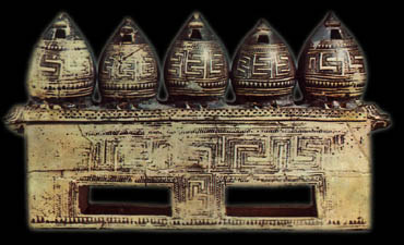 Geometric pyxis in the form of granaries. It was found in the burial of a wealthy Athenian woman to the northwest of the Areios Pagos. Mid-9th century BC. Agora Museum, Athens P 27646. Hellenic Ministry of Culture/Archaeological Receipts Fund. © Hellenic Ministry of Culture |