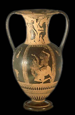 Red-figure amphora with a representation of Dike (Justice) striking Adikia (Injustice). 520 BC.