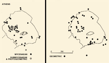 Map showing the Athenian cemeteries of the Submycenaean and Geometric periods.