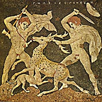 The best mosaics of this kind come from Pella. For certain they echo the achievements of their painted originals. One of the Pella artists used to sign his work: he was named Gnosis. There are other early mosaics from Sicyon and Olynthus. From Eretria, Vergina and Apollonia in Illyria, we have specimens showing a more finely-developed gradation of colour.