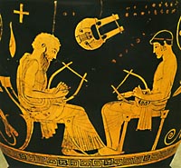 In classical Athens, music lessons included dancing and learning an instrument such as the kithara or the pipe. It was frequently experimental, and did not call for the use of a written score. This cannot have been too difficult, since Hellenic music was not polyphonic. The aim of elementary education in classical Athens was to prepare young men, irrespective of social class, for their entries into the political and social life of the polis. The classical ethic can be summed up in the motto "kalos k'agathos" (aesthetically pleasing and socially serviceable), implying the dominant values of the time, values to which young men were expected to respond. |