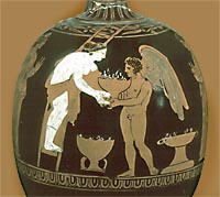 The worship of personifications of abstract ideas and situations was institutionalized at Athens in the fourth century B.C. Some of these had already made their debut by the end of the fifth century - for instance Democratia, Peace, Good Luck, or the Good Fairy. The Athenians honoured all these with sacrifices and offerings. Information about their worship is almost nil. Pausanias mentions an altar of Euclea built from the proceeds of the spoils of the Persian wars. Not that there was anything revolutionary about the worship of an abstract idea: traditional worship embraced personifications of ideas, since these were found among the Olympian gods - Peitho (Persuasion), for instance, Plutus (Wealth), Eros, or Themis (Lawfulness). Often they were closely coupled with a god - Peitho with Aphrodite, for instance. What was new was the freeing up of the specific cult from the Olympian pantheon, and the proliferation of such cults.