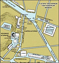 Η Αθήνα υπέστη μεγάλες καταστροφές κατά τους Περσικούς πολέμους. Ήδη από το 479 π.Χ. ο Θεμιστοκλής μερίμνησε για τη νέα οχύρωση της πόλης και του λιμανιού της. Όμως τα υπόλοιπα δημόσια κτήρια -και κυρίως οι ναοί- δεν ανοικοδομήθηκαν, με σκοπό να θυμίζουν την περσική ιεροσυλία. Περί τα μέσα του αιώνα ωστόσο ο Περικλής προχώρησε στην ανέγερση ναών, με λαμπρότερους βεβαίως εκείνους της Ακρόπολης. Μια άλλη τροποποίηση του σχεδίου της Αθήνας οδήγησε στη μετατόπιση της Αγοράς από την αρχική της θέση, βορειοανατολικά της Ακρόπολης, δυτικότερα σε μια πολύ μεγαλύτερη έκταση που έφτανε ως το λόφο του Αγοραίου Κολωνού. Ο κεντρικός άξονας της πόλης ήταν η οδός που από το Δίπυλο και το Πομπείο, προχωρώντας διαμέσου των στοών και των δημόσιων κτηρίων, διέσχιζε την καινούργια και την παλιά Αγορά και κατέληγε στην οδό Τριπόδων. Κρήνες, μνημεία, βωμοί και αγάλματα στόλιζαν αυτό το δρόμο δίνοντας μια εικόνα λαμπρότητας και μεγαλοπρέπειας. Αντίθετα με τη δημόσια επίδειξη οι ιδιωτικές κατοικίες ήταν για πολλά χρόνια αρκετά απλές.