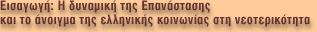 Tο άνοιγμα της ελληνικής κοινωνίας στη νεοτερικότητα συνιστά τομή στο
