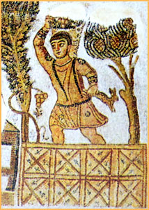 Agriculture was the main source of wealth for the Byzantine Empire: rural scene, from a mosaic in the city of Tabarka,