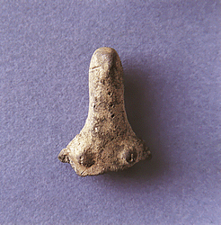 Μακρύγιαλος. Tμήμα πήλινου γυναικείου ειδωλίου.