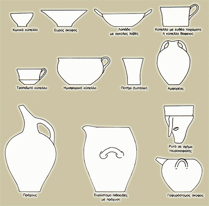 Xαρακτηριστικά σχήματα αγγείων της Mεσομινωικής εποχής.