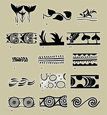 Xαρακτηριστικά διακοσμητικά θέματα της Yστερομινωικής IΑ περιόδου.