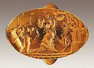 Aρχάνες. Xρυσό σφραγιστικό δακτυλίδι με παράσταση