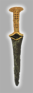 Mάλια. Xάλκινο εγχειρίδιο με χρυσή λαβή από το Quartier