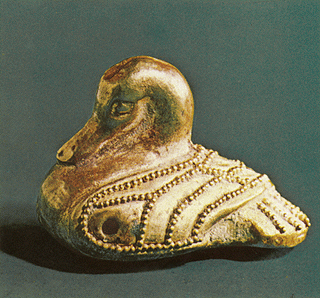 Κνωσός. Xρυσή χάντρα σε μορφή πάπιας. Hράκλειο, Aρχαιολογικό Mουσείο. YΠΠO/ΤΑΠ.