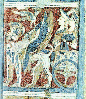 Mία στενή πλευρά της σαρκοφάγου της Aγίας Tριάδας.