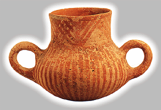 Δίωτο σφαιρικό αγγείο με ερυθρή γραπτή διακόσμηση