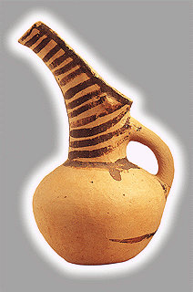 Ραμφόστομη πρόχους με καστανή γραπτή διακόσμηση.