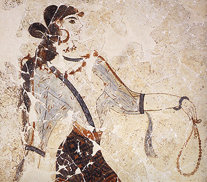 Ακρωτήρι Θήρας. Τμήμα της "τοιχογραφίας των λατρευτριών" από την Ξεστή 3. Θήρα, Προϊστορικό Μουσείο. YΠΠO/ΤΑΠ.