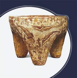 Thera, Akrotiri. Tripod offerings table with depiction of dolphins. Athens, National Archaeological Museum. Hellenic Ministry of Culture/ARF.