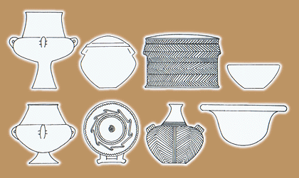 Pottery shapes of the Early Cycladic I period (after Barber-MacGillivray 1980, 142). Barber, R.L.N., Oi Kyklades stin Epochi tou Chalkou, Commercial Bank of Greece, Athens 1994, p. 90-91, fig. 58, No.1-8 (translated into Greek by O. Chadjianastasiou). © Barber, R.L.N.-Emporiki Trapeza tis Ellados S.A. |