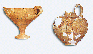 and Late Helladic IIIC hydria (area of the Mycenaean House H). Televantou, C., I Siphnos kata tin Proistoriki epochi, in: Siphnos, Aegean Ministry, Athens 1998, p. 28-29, fig. 8, 10. © Hellenic Ministry of Culture |