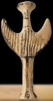 Schematized female figurine with arms open in a pose of worship.