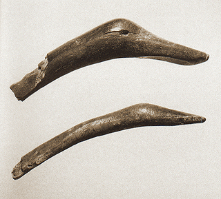 Naxos. Zas Cave. Bone heads of water birds. Late Neolithic. Naxos, Archaeological Museum ÌÍ8965, ÌÍ8966. Hellenic Ministry of Culture/ARF.