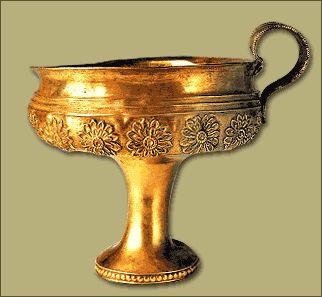 Mycenae, Grave Circle A, Grave IV. Gold kylix with rosettes and circles in repousse decoration.