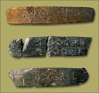 Κνωσός. Φυλλόσχημες πινακίδες Γραμμικής Β με καταγραφές αιγοπροβάτων. ΥΠΠΟ/ΤΑΠ.