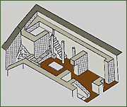 κέντρο. Σχεδιαστική αναπαράσταση μυκηναϊκού ιερού.