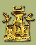 Χρυσό έλασμα σε σχήμα τριμερούς ιερού. |