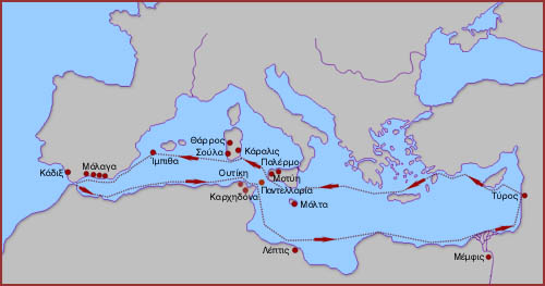 τις θαλάσσιες διαδρομές των Φοινίκων στη Μεσόγειο κατά τον