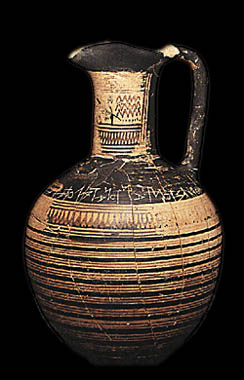 Οινοχόη που διασώζει μία από τις αρχαιότερες ελληνικές επιγραφές. Βρέθηκε στο Δίπυλο και χρονολογείται στο β' μισό του 8ου αιώνα π.Χ. Αθήνα, Εθνικό Αρχαιολογικό Μουσείο 192. ΥΠΠΟ/ΤΑΠ. © ΥΠΠΟ