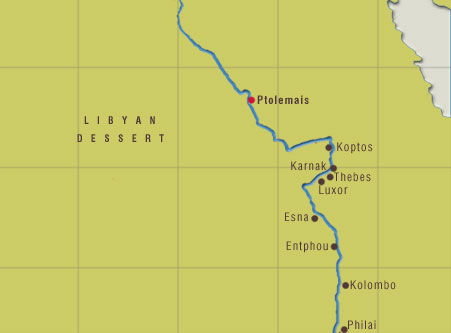 Map that depicts Egypt during the period of the Ptolemy's kingdom. Only Alexandria, Naucratis and Ptolemais were Greek cities, organized according to the Greek tradition.