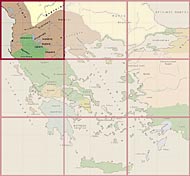Map of Greece and Asia Minor after the end of the 3rd Macedonian war. Then the kingdom of Macedonia was abolished, which was divided into four autonomous "parts", which had to pay tribute to Rome. At the rest of Greece, Rome exercised the policy of abolishing the various powers by creating new Koina.