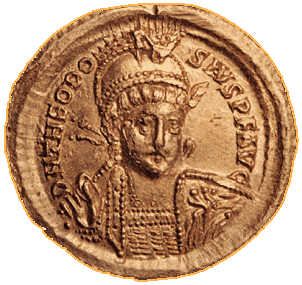 Gold coin of the Emperor Theodosios II.