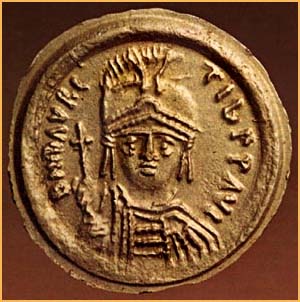 Gold coin of the Emperor Maurice: Maurice proved himself a capable general, and around 600 AD managed to stabilize conditions along the imperial frontiers. Athens, Numismatic Museum. Ministry of Culture/Archaeological Recipts Fund. Historia tou Hellenikou Ethnous, v. 7, Ekdotike Athenon, S.A. 1978, p. 216. © Hellenic Ministry of Culture |