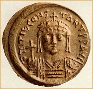 Gold coin of the Emperor Tiberios, one of Justinian's successors.