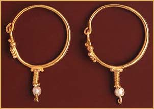 Urban economic activity was closely related to trade and manufacture (of jewellery, carpentry, etc.): 6th century golden earrings, an example of the high quality of artisan production. Athens, 1st Ephorate of Byzantine Antiquities. Ministry of Culture/Archaeological Receipts Fund, 1579 a-b. Byzantine Museum: New Acquisitions (1986-1996) March 17-26, 1997 Exhibition Catalogue, Published by the Archeological Receipts Fund, Athens 1997, p. 166, ill. 68. © Hellenic Ministry of Culture |